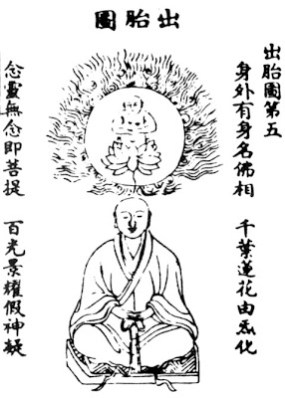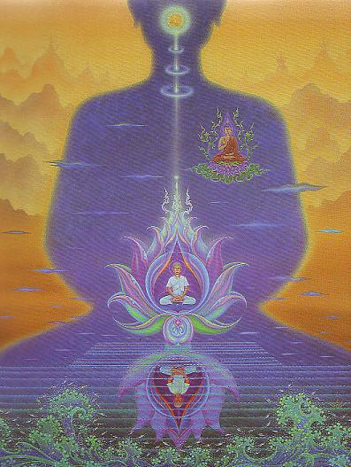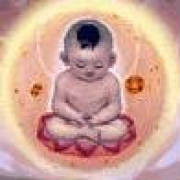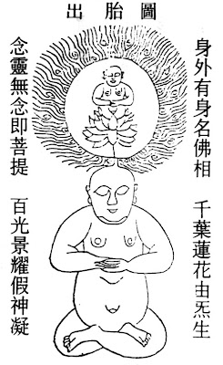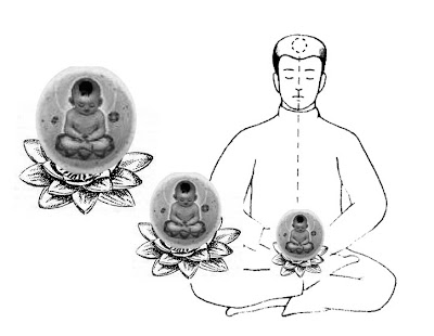 嬰兒慢慢地通過身體內部上升到頭部前額,光芒四射,並且慢慢長大。
