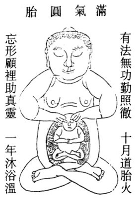這是道家所稱的胎息術,亦是氣功裡的養生功法─童子術